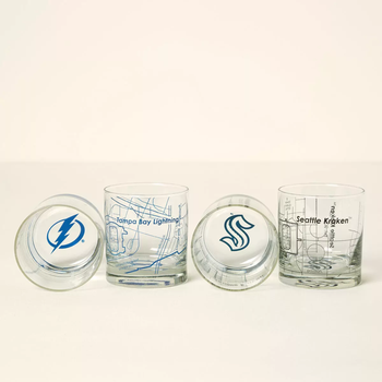 - Drink to your favorite NHL™ team with a pair of glasses printed with a map of their hockey arena home.