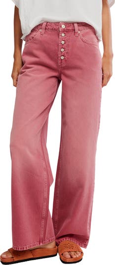 Effortlessly cool and slouchy, these full-length jeans stand out with exposed buttons and nonstretch denim in a sun-faded red wash.