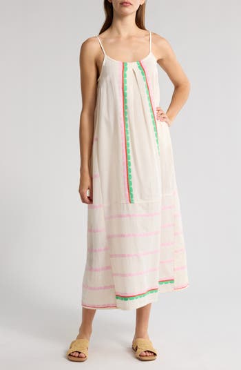 Nia Stripe Pleated Cotton Cover-Up Slipdress