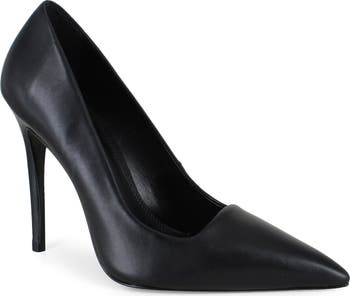 A pointy toe elongates the profile of a streamlined pump shaped from soft nappa leather and lifted by a sleek stiletto heel.