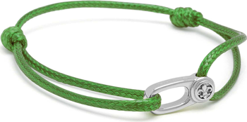 - Green nylon string with stainless steel logo hook in silver finish