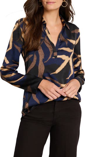 Polished and sophisticated in lustrous, drapey satin, this moody hued top is as ready to accompany you to the office as it is for a refined evening out, or simply on a weekend brunch stop with friends.