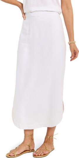 A curved hem and side slits underscore the ease of a linen-blend skirt that feels flowy, lightweight and ideal for warm days.