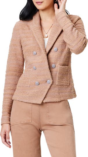 Elevate your office style with this bouclé blazer featuring polished buttons and classic peaked lapels.