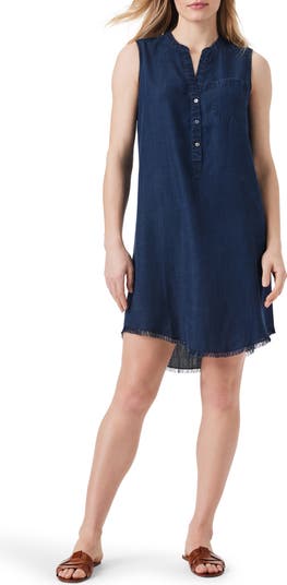 Fall for the easy drape of this soft sleeveless dress crafted with a dark denim wash and a feathery high-low hem.