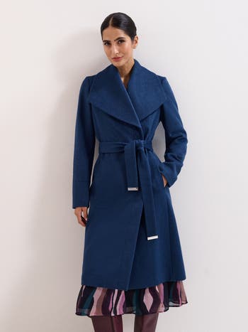 Say hello to your new favourite coat. Designed in a gorgeous rich blue shade, this luxurious wool coat is perfect for keeping your warm during the colder months, without compromising on style. The shawl collar and matching belt with gold accents add further refinement, making you look chic all season long, year after year.