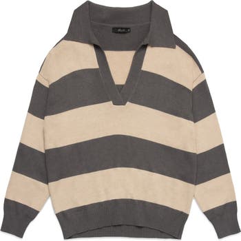 Wide stripes bring plenty of preppy style to this lightweight sweater topped with a classic polo collar.