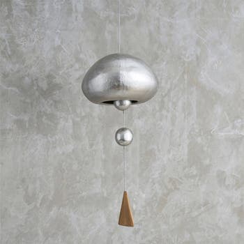 Substantial Cast aluminum bells feature a pair of metal spheres as clappers, and strung on a wire cord. A dome-shaped bell of sand-cast aluminum, paired with a triangular, polished oak sail oiled for weatherproofing. Choose from the nickel or antique brass finishes.