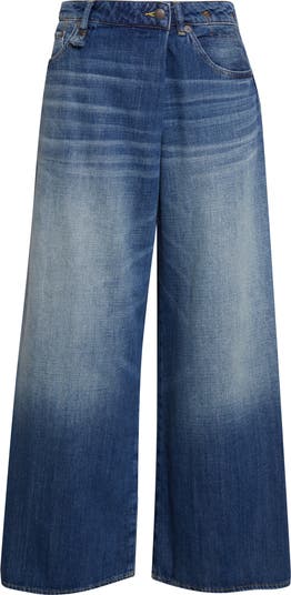 Chris Leba's rebellious spirit is infused throughout these wide-leg jeans, from the faded, subtly distressed nonstretch denim to the wrap-inspired draping over the fly.