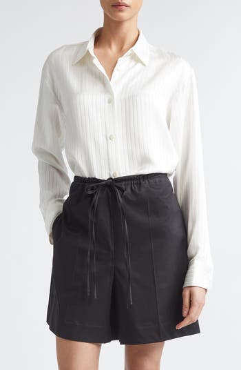 Traditional Vietnamese craftsmanship intersects with modern minimalism in this satiny jacquard-stripe shirt that reflects the quiet refinement of fourth-generation tailor Lam Gia Khang’s eponymous brand.