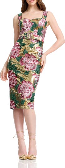 Nicole Sequin Floral Embroidered Cocktail Midi Dress