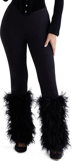 Cut from stretch crepe, these slim-fit pants feature fun feathers at the legs inspired by classic '80s style.