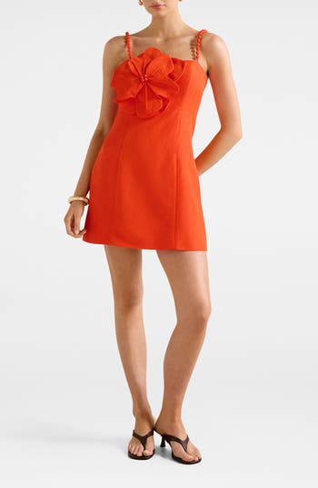 Textured straps top this vivid leggy-length dress made with comfortable back smocking and romanced by a delightful bloom.
