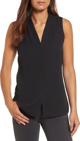 A V-neck top that goes from workday to girls' night out is cut from fluid crepe with a smocked inset in back adding flattering definition to the fit.