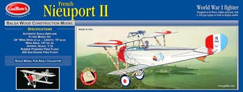 Guillow's is the recognized leader in quality scale balsa model airplane kits. Our model construction kits are the last word in scale realism for the super detail fan and light weight for those who build and fly. Each model is a small but faithful replica of an airplane widely known for deeds in wartime or present day popularity. Series 200 features magnificent war birds of the 1914 - 1918 era. Fighters made famous by World War 1 aces like Bishop, Richthofen and Guynemer. Components include 1 Guillows Nieuport II, radial engine, gun, figure, 2 wheels, nose cowl, propeller, 1 sheet of decals, steel control rod, rubber thread. Recommended for ages 14 years and older. No batteries required. Assembled dimensions are 17.25 inches long x 1.75 inches wide x 6.5 inches tall. Components include 1 Guillows Nieuport II, radial engine, gun, figure, 2 wheels, nose cowl, propeller, 1 sheet of decals, steel control rod, rubber thread. Recommended for ages 14 years and older. No batteries required. Assembled dimensions are 17.25 inches long x 1.75 inches wide x 6.5 inches tall.