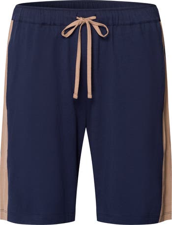 These shorts made of 100% cotton have a sporty and comfortable fit. The cozy cut with comfort waistband and two pockets keeps you relaxed NIGHT and DAY. Accents are set by the side block stripes and the cord in a contrasting color. Style these Bermuda shorts as you like with matching shirts from the same collection for your new favorite leisure outfit, home office, or vacation. The lightweight single jersey is ideal for a summer night's sleep.
