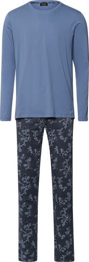 Timelessly stylish, the Night & Day Long Sleeve Pajama set is an easy go to for sleep or lounge. Tailored from 100% cotton, for incredible softness and comfort, this pajama set includes a long sleeve top with a crew neckline and full length printed pajama pants. They have a covered elastic waistband for the ultimate in comfort.