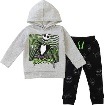 Bring the fun of Halloween Town to their everyday wardrobe with these *Nightmare Before Christmas* hoodie and pants sets! Featuring Jack Skellington and his loyal pup Zero in bold, allover designs, each outfit blends cozy fleece warmth with playful style. Soft, easy to dress, and full of personality, these sets are perfect for chilly playdates, Halloween excitement, or simply curling up with their favorite Tim Burton tale.