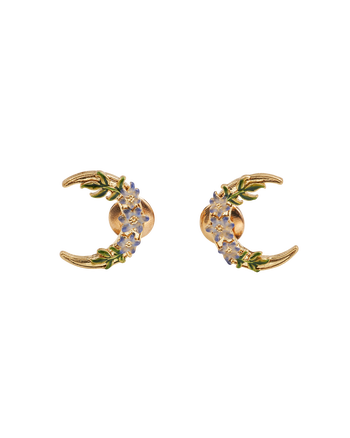 After dark is when the nightshade flower reveals its true beauty, reflected in these delicate stud earrings. Carefully hand-painted onto the enamel, the florals sit neatly atop the tiny crescent moons that have been crafted from 22ct worn gold-plated brass. Magical and mystical, if you like your jewellery to have a vintage vibe, you'll want to wear these day and night.