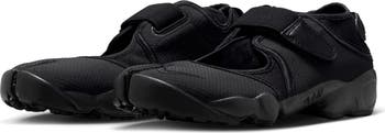 I was so excited to see the Nike Air Rift in black/black was available in my size, size 6 women. All black has not been easy to find. The shoe is so comfortable. I normally wear a 6.5 - 7, but in this specific shoe style, I get a 6 for a better fit - Size 7 is too loose for me. The shoe is also so versatile, you can really wear it with anything. The Velcro closure on the top of the shoe and back of the heel helps make adjustments easy. Very happy with my purchase!