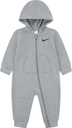 Elevate your little one's casual-day wardrobe with this hooded romper featuring Nike's signature Swoosh at the chest and a zippered front for easier changes.