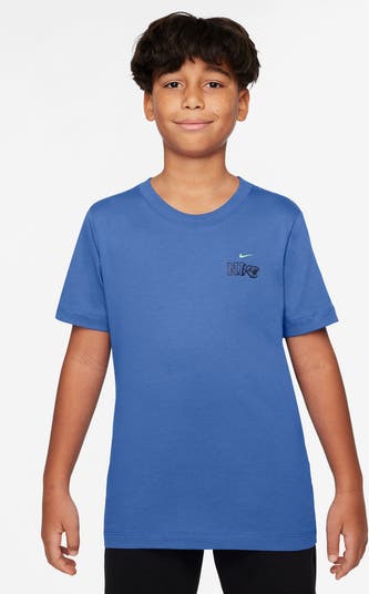 Hand-scrawled artwork brings big Nike energy to a T-shirt made for kids who like to play and relax in the comfort of soft, breathable cotton.