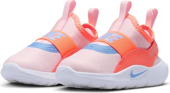 Sporty, snug and sized for active little feet, this easy-on/stay-on sneaker features a stretchy sock upper wrapped in stay-put elastic with a reinforced toe to help prevent stubbing. Flex grooves in the sole and grippy lugs in the tread make it easy to walk, skip and jump with well-grounded confidence.