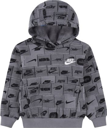 Cotton-blend fleece brings all-activity comfort to a hoodie that keeps your kid playing and winning in decades of heritage Nike logos.