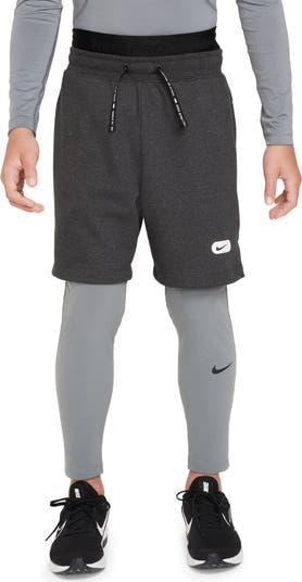 Stretchy, sweat-wicking fabric brings all-activity comfort to athletic tights sporting a kid-size fit and a side pocket for keeping small essentials handy.