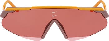 Shield sunglasses in an oversized silhouette offer sporty style with the comfort of soft nose pads and rubber-tipped temples.
