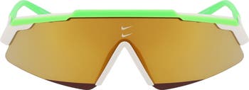 Shield sunglasses in an oversized silhouette offer sporty style with the comfort of soft nose pads and rubber-tipped temples.