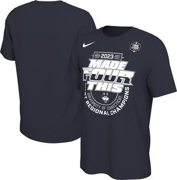Celebrate the UConn Huskies' remarkable journey to the Final Four with the Nike Navy UConn Huskies 2023 NCAA Men's Basketball Tournament March Madness Final Four Regional Champions Locker Room T-Shirt. This commemorative tee features screen-print graphics that proudly display the Huskies' logo and the iconic Final Four Regional Champions designation. Made from soft cotton, this shirt offers comfort and breathability, making it perfect for cheering on the Huskies or reliving the excitement of their historic tournament run.