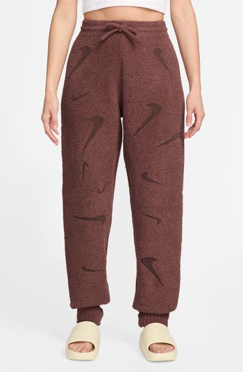 Plush bouclé adds to the comfort of these laid-back drawstring joggers designed with an ultracool allover Swoosh design.
