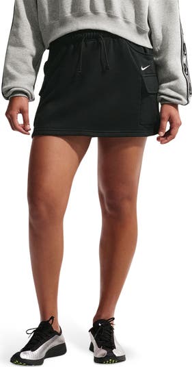 Cozy and casual, this sporty miniskirt cut from midweight French terry has a relaxed fit, drawstring-cinched waist and lots of pockets.