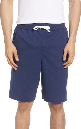Raw hems amplify the old-favorite appeal of logo-stamped shorts made from comfortable French terry.
