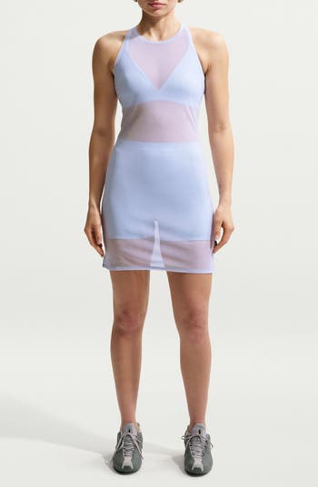 Sporty and sheer, this tight-fit racerback dress thinly veils your look taking it from function to fashion.