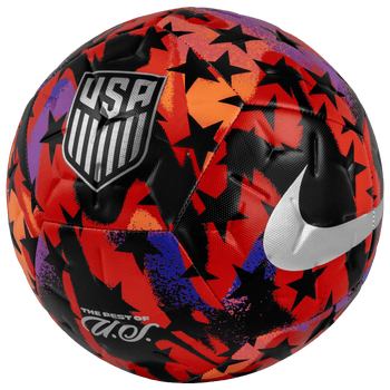 Train to play like your favoriteUSMNT players with this Academy Soccer Ball by Nike. Its debossed OmniSculpt technology grooves reduce drag to provide truer flight, while textured casing helps you maintain control. High-contrast details make tracking this soccer ball easier and highlight your USMNT pride on the pitch.
