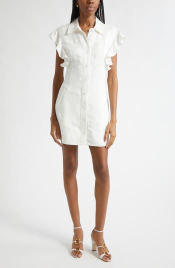 Nikki Ruffle Sleeve Linen Blend Shirtdress