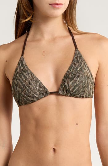 Nikoleta Metallic Print Mesh Triangle Bikini Top