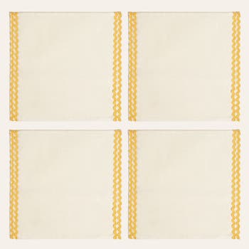 Nilufer Rick Rack Embroidered 100% Linen Napkin Set Of 4