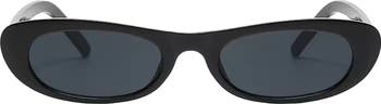 Polarized lenses offer superior visual clarity in sleek oval sunglasses crafted from lightweight polycarbonate.