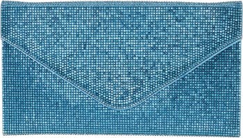 Lustrous crystals lend glamorous appeal to an evening-ready envelope clutch fashioned with a drop-in chain strap for hands-free carry.
