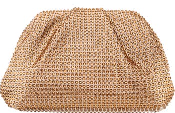 Tonal jewel embellishments amplify the glamorous appeal of an evening-ready satchel fitted with a drop-in chain strap for hands-free carry.