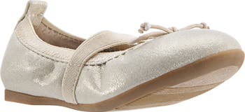 Elastic trim ensures a secure fit in this ballet flat adorned by a elastic bow at the toe.