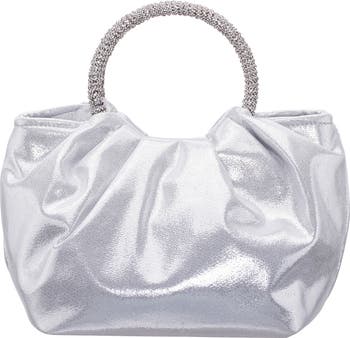 Crystal-encrusted top handles and a ruched satin exterior distinguish an evening-ready clutch that will flawlessly complement your elegant looks.