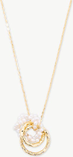Nina Gold Interlocking Ring & Bead Pearl Pendant Necklace
