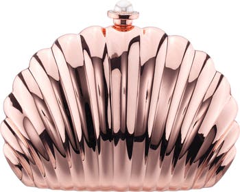 Make a mermaid-worthy statement with this shell-shaped clutch that's fashioned from gleaming metal and lined with luminous satin.