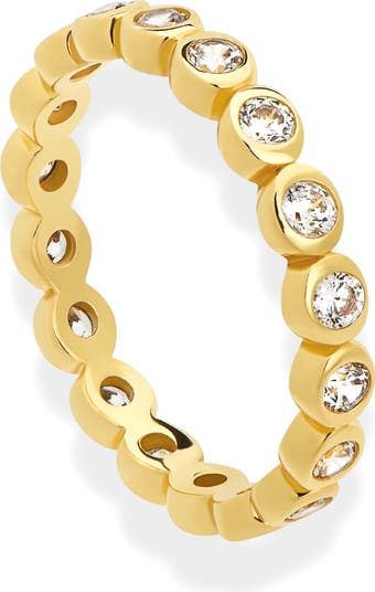 A full circle of bezel-set cubic zirconia sparkle around this eternity band that will be the perfect addition to your beloved stack.