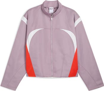 Inspired by the golden age of techno in the '90s, this ultracool colorblocked jacket features a structured silhouette and the brand's iconic cat logo embroidered at the neck.