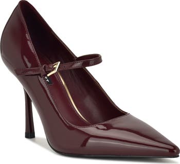 A glossy patent finish adds an extra touch of glamour to a pointy-toe pump set on a lofty stiletto heel.
